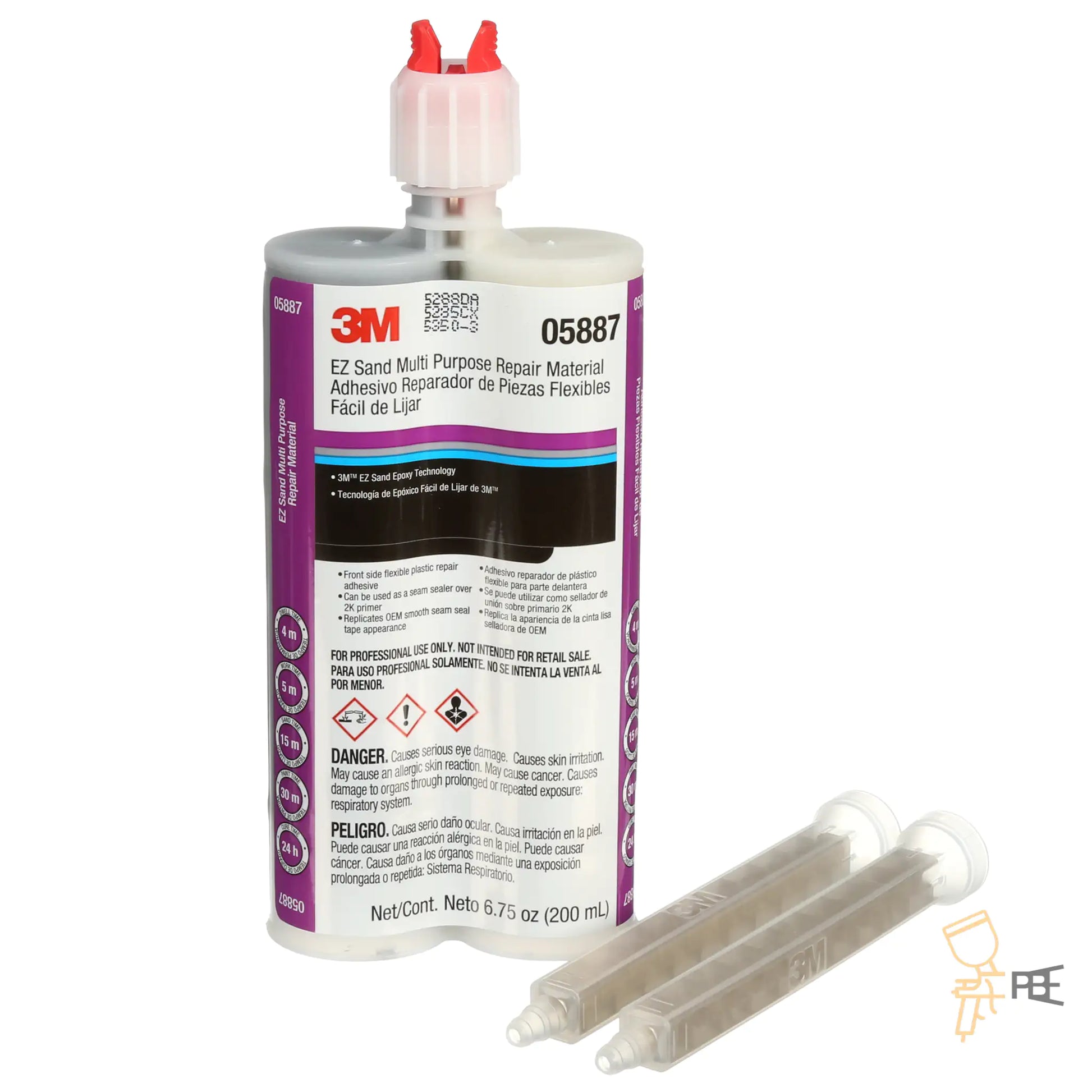EZ Sand Multi-Purpose Repair Material is a ready-to-use 2-part epoxy finishing adhesive material that dries to a flexible hardness, ideal for repairing plastic parts such as bumper covers and body panels. It applies easily from a 3M applicator gun mixing nozzle, with no pre-mixing or measuring. It is quickly sand-able for excellent featheredge, and paintable in as little as 30 minutes.