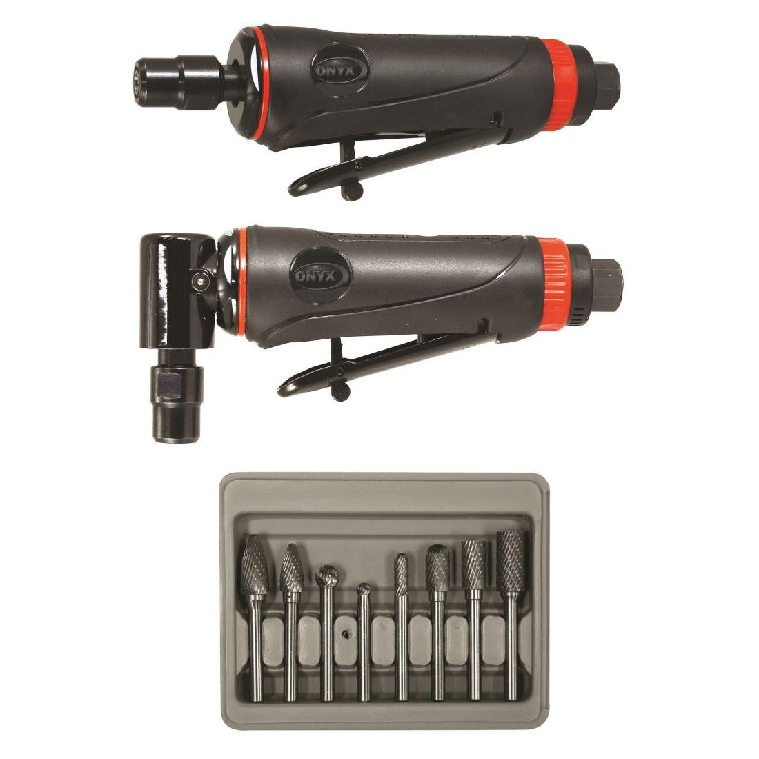 The Astro Tools 219 ONYX 3pc Die Grinder Kit w/ 90° Die Grinder, Die Grinder & 8pc Double Cut Carbide Rotary Burr Set contains Astro’s 201, 204 and 2181.