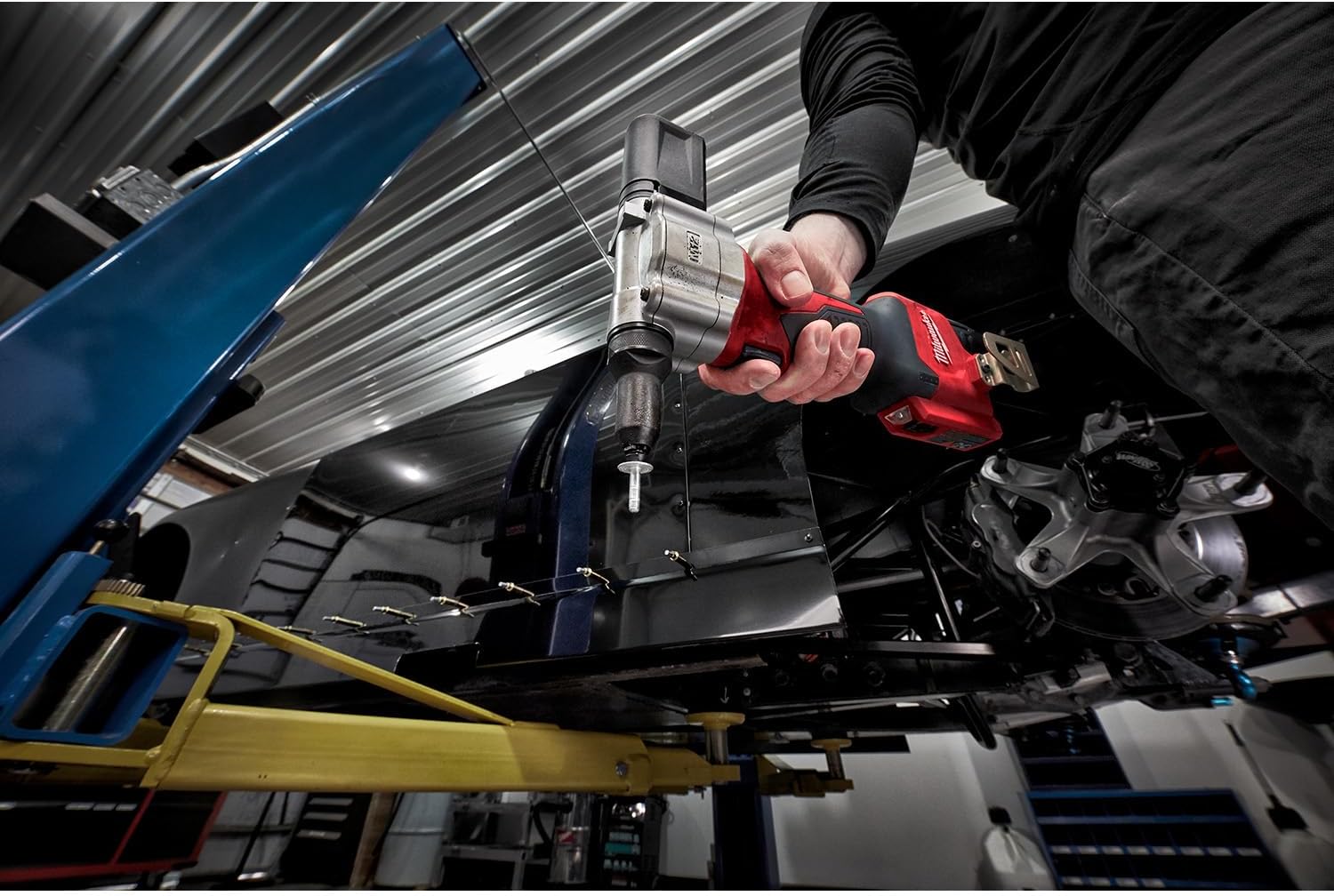 The Milwaukee 2550-20 M12™ Rivet Tool is a groundbreaking cordless solution designed for fast and efficient riveting. Weighing only 4.15 lbs, this compact tool offers the power and performance needed for automotive repair, fabrication, and other applications. With the ability to pull up to 250 stainless steel rivets (3/16”) or 450 steel rivets (1/8”) on a single charge using a 1.5Ah battery, it significantly reduces muscle effort compared to traditional hand tools.